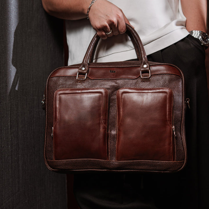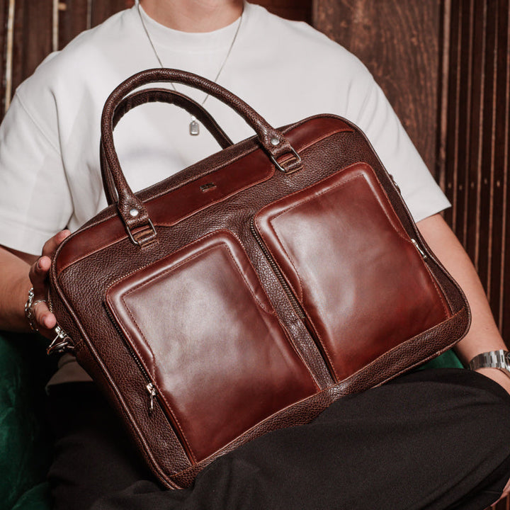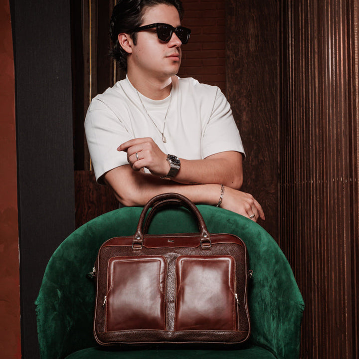 Accesorio de piel genuina para caballero, en un diseño sobrio y elegante que refleja distinción en cada detalle. Perfecto para la oficina o viajes de negocios.