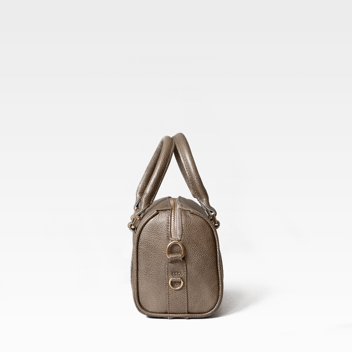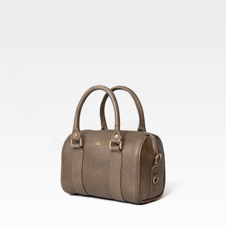 Bolso para dama confeccionado en piel 100% genuina color beige taupe. Su diseño elegante y compacto lo convierte en un accesorio perfecto para el día a día, combinando comodidad y estilo en cada ocasión.