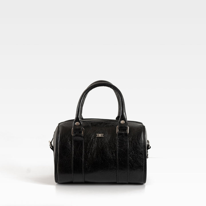 Bolso para dama confeccionado en piel 100% genuina color negro craquelado. Su diseño elegante y compacto lo convierte en un accesorio perfecto para el día a día, combinando comodidad y estilo en cada ocasión.